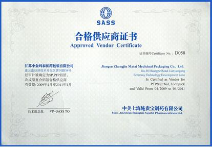 近日,我公司被中美上海施貴寶制藥有限公司評(píng)為2009-2011年度合格供應(yīng)商,并頒發(fā)證書。