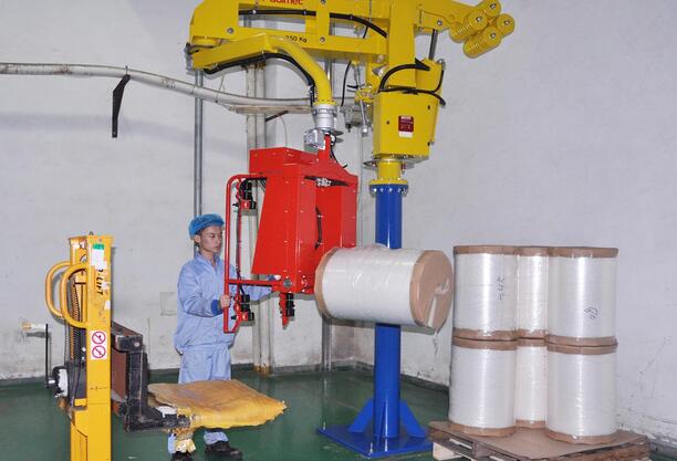 該機(jī)械手經(jīng)過五個(gè)月的使用,效果明顯。該設(shè)備可以使數(shù)百公斤重的卷材,象失重一般處于漂浮狀態(tài),操作者輕松地將卷材放平和豎起。不僅可以最大限度地避免卷材碰傷、降低生產(chǎn)成本,同時(shí)也避免了操作者的背、腰的損傷和疲勞,提高了生產(chǎn)效率和安全性。