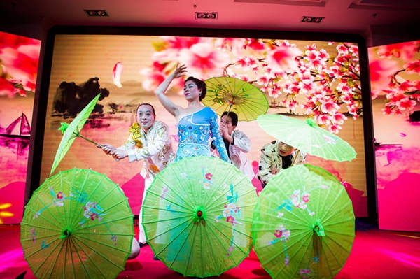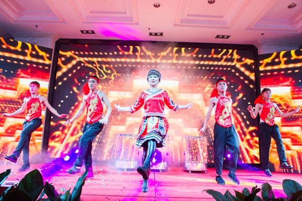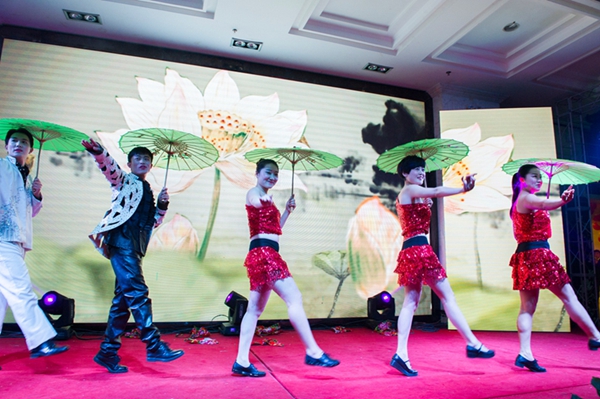 年會的文藝演出部分,在一工廠員工表演的活力四射、激情洋溢的開場舞中拉開了帷幕。專業的舞臺效果和色彩絢麗的燈光讓本場晚會在往年的基礎上提升到一個新的高度。晚會節目更是豐富多彩,各具特色,融合了古典時尚、民族流行等元素,歌舞、小品、相聲輪番上演,充分展示了中金瑪泰員工優秀的人文素養和健康向上的精神風貌。 來自世紀緣大酒店的姑娘們頭戴銀飾,身著艷麗的服裝,跳著活潑歡快的侗族舞蹈《多嘎多耶》,讓觀眾們眼前一亮。技術質量部帶來的《舞舞相約》,一個個撐著油紙傘款款走來的姑娘們,讓觀眾仿佛置身于淡墨淺韻的江南水鄉,那曼妙動人、搖曳生姿的孔雀舞更是驚艷四座。二工廠帶來的《鼓舞2016》,帥哥美女們頭戴五彩花環,穿著飄揚的草裙,用火辣多情的草裙舞贏得了臺下觀眾的陣陣歡呼。最振奮人心的莫過于集聲、光、水景為一體的水鼓舞, 氣勢恢宏,充分演繹出燦爛振奮的舞風和鼓韻。生產計劃部那充滿異域風情的新疆舞《掀起你的蓋頭來》以其艷麗的服飾、歡快的旋律、大膽的反串以及場上場下的精彩互動,更是將全場觀眾的熱情點燃。小品《考核》、《偶像劇》以及相聲《港城文化人》也是引爆全場,喜劇夸張的表演,幽默詼諧,笑料百出,引得觀眾掌聲連連,笑聲不斷。 精彩的節目還在繼續上演,臺上臺下已成為一片歡樂的海洋,抽獎環節中,銀幕上滾動的新年寄語不僅是晚會的一大亮點,更是廣大員工對新一年的憧憬和美好祝愿。除了精彩絕倫的文藝演出,最激動人心的莫過于年會上的抽獎和微信搶紅包活動了,一輪輪抽獎及微信搶紅包活動不斷將年會的氣氛推向高潮。 在酒會活動中,櫻井董事長、徐總經理攜公司高層領導向員工一一敬酒,并送上紅包,感謝各位員工為公司發展所付出的努力。新年伊始,讓我們帶著對春的向往和對公司的祝福,凝聚力量,整裝待發,共同攜手邁入2016年的全新里程!