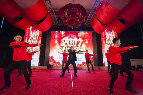 精彩節目演出的同時還穿插了激動人心的抽獎環節和微信搶紅包活動,一輪輪活動將年會的氣氛不斷推向高潮。在酒會活動中,櫻井董事長、徐總經理攜公司高層領導向員工一一敬酒,并送上紅包,感謝各位員工為公司發展所付出的努力。新年伊始,讓我們帶著對春的向往和對公司的祝福,凝聚力量,整裝待發,共同攜手邁入2017年的全新里程!
