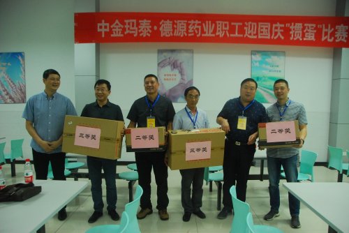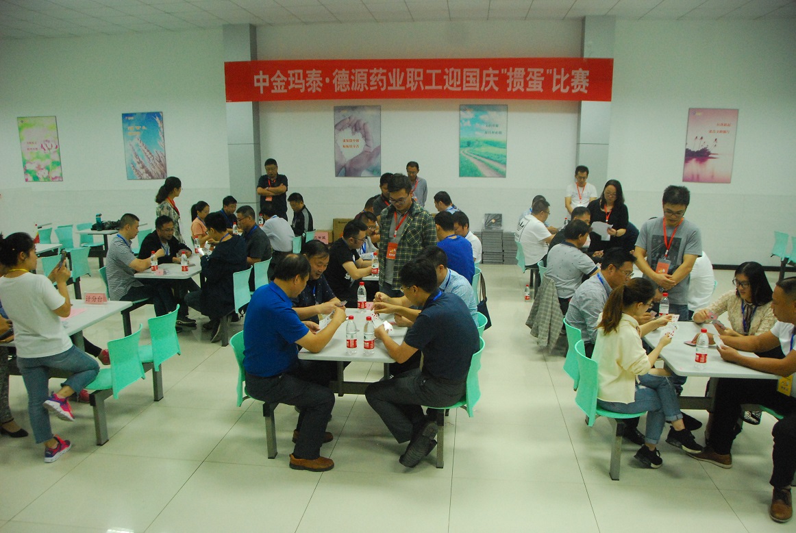 為慶祝中華人民共和國成立69周年,9月29日,中金瑪泰·德源藥業(yè)職工迎國慶“摜蛋”比賽在德源藥業(yè)舉行。本次活動雙方各選派出8組選手參加了比賽。
