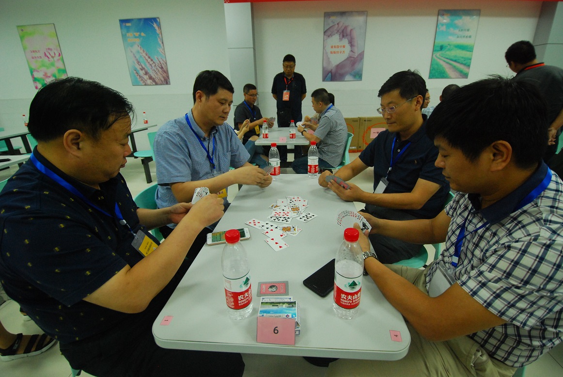 整場比賽在輕松而愉快的氛圍中進(jìn)行,賽場上,選手們?nèi)褙炞ⅰ⒍分嵌酚隆⒛跖浜稀⒊林鴳?yīng)戰(zhàn),在切磋牌技、交替對弈的同時,也增進(jìn)了友誼。經(jīng)過4輪緊張而激烈的角逐,共有3組選手脫穎而出,分別獲得了前三名,雙方領(lǐng)導(dǎo)也為獲獎選手頒發(fā)了獎品。